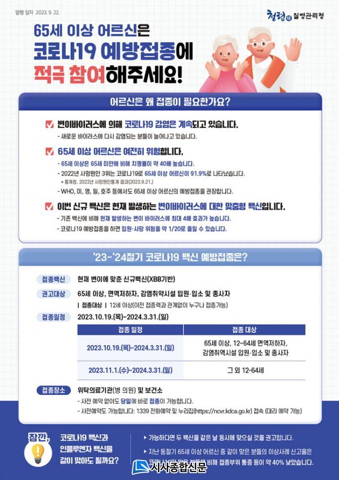 ½Ã °ü°èÀÚ´Â ¡°°¨¿°À̳ª Á¢Á¾À¸·Î Çü¼ºµÈ Äڷγª19 ¸é¿ªÀº ½Ã°£ÀÌ Áö³ª¸é¼ °¨¼ÒÇϹǷΠÄڷγª19 ´ëÀÀ ¸é¿ª¼öÁØÀ» ´Ù½Ã ³ôÀ̱â À§Çؼ´Â À̹ø Á¢Á¾ÀÌ ¸Å¿ì Áß¿äÇÏ´Ù¡±¸ç ¡°65¼¼ ÀÌ»ó ½Ã¹Î°ú ±âÀúÁúȯÀÚ´Â Á¢Á¾¿¡ Àû±Ø Âü¿©ÇØ ´Þ¶ó¡±°í ´çºÎÇß´Ù.