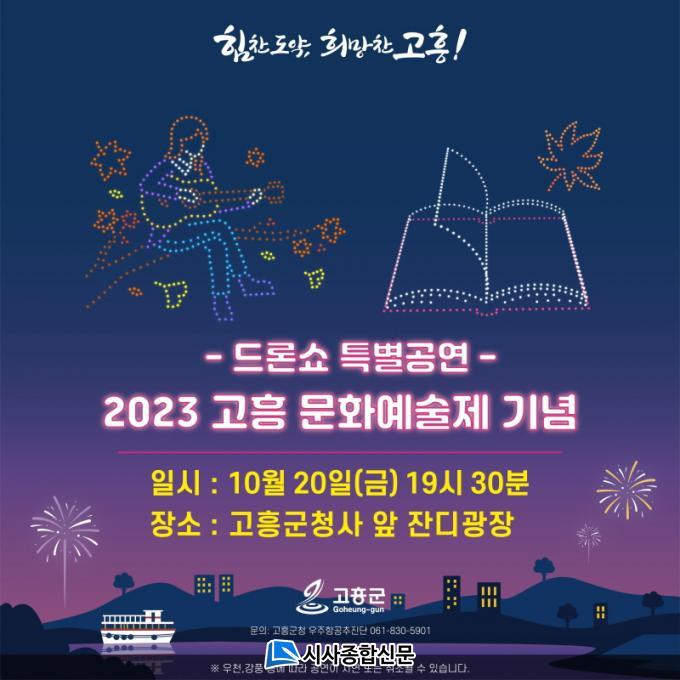 À̹ø Ưº°°ø¿¬Àº µå·Ð 500´ë ±Ô¸ð·Î ¡®2023 °íÈï ¹®È¿¹¼úÁ¦¡¯ÀÇ ¡ã°³¸·½Ä ¹× ÃàÇϰø¿¬ ¡ãµ¾ÀÚ¸® ¿µÈÁ¦ µî ´Ù¾çÇÑ º¼°Å¸®¿Í ÇÔ²² Áö¿ªÁÖ¹ÎÀÌ °ø°¨Çϸç Áñ±æ ¼ö ÀÖ´Â ÄÜÅÙÃ÷·Î ±¸¼ºµÈ´Ù. ¶ÇÇÑ, 21ÀÏ 20½Ã¿¡´Â ³ìµ¿Ç׿¡¼ ¡®°¡À»Ç³°æ¡¯À» ÁÖÁ¦·Î Á¤±â°ø¿¬ÀÌ ÁøÇàµÈ´Ù.