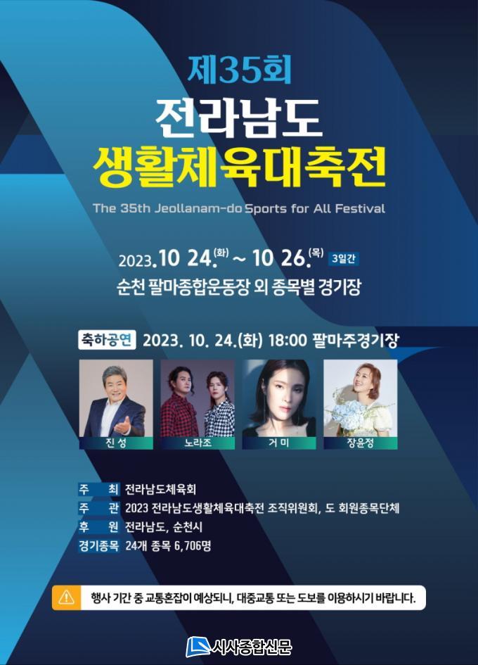 À̹ø ´ëȸ´Â¡®µµ¾àÇÏ´Â ÀÏ·ù¼øÃµ ÇÔ²²¿©´Â ÇູÀü³²¡¯À» ÁÖÁ¦·Î Àü¶ó³²µµ¿Í ¼øÃµ½Ã°¡ ÈÄ¿øÇϰí, Àü³²Ã¼À°È¸ ÁÖÃÖ ¹× Àü³²»ýȰüÀ°´ëÃàÀüÁ¶Á÷À§, °¢ Á¾¸ñ´ÜüÀÇ ÁÖ°üÇÏ¿¡ Àü³² 22°³ ½Ã¡¤±º 7,000¿© ¸íÀÇ ¼±¼ö°¡ Âü°¡ÇÑ´Ù. 24ÀÏ ¿ÀÈÄ 4½Ã 30ºÐ ÆÈ¸¶ÁÖ°æ±âÀå¿¡¼ °³È¸½ÄÀ» ½ÃÀÛÀ¸·Î 26ÀϱîÁö ÆÈ¸¶Á¾ÇտÀå ¹× Á¾¸ñº° °æ±âÀå¿¡¼ 24°³ Á¾¸ñ(Á¤½Ä 22, ¹Î¼Ó°æ±â 1, ½Ã¹ü 1)ÀÇ °æ±â°¡ ÆîÃÄÁø´Ù. ¶ÇÇÑ, °³È¸½ÄÀÇ ½ÄÈÄÇà»ç¿¡¼´Â ÀåÀ±Á¤, Áø¼º, °Å¹Ì, ³ë¶óÁ¶ µî ÀαⰡ¼öµéÀÇ ÃàÇϰø¿¬ÀÌ À̾îÁø´Ù.