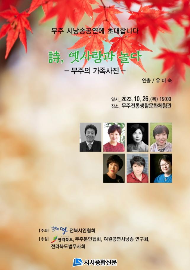À̳¯ Çà»ç´Â ¹«ÁÖ¸¦ ´ëÇ¥ÇÏ´Â ¿¹¼úÀÎÀÇ »î°ú ´ëÇ¥ °ü±¤ ÀÚ¿ø µîÀ» ½Ã·Î Ç¥ÇöÇÏ´Â ½Ã³¶¼Ûȸ·Î ÀüºÏ½ÃÀÎÇùȸ(ȸÀå ÀÌÇü±¸)°¡ ÁÖ°üÇÑ °¡¿îµ¥ ¹«ÁÖ¹®ÀÎÇùȸ(ȸÀå ÀÌ¿¬Èñ)¿¡¼ Ȱµ¿ ÁßÀÎ ¹®ÀεéÀÇ ÀÛǰÀÌ °øÀ¯µÉ ¿¹Á¤ÀÌ´Ù.
