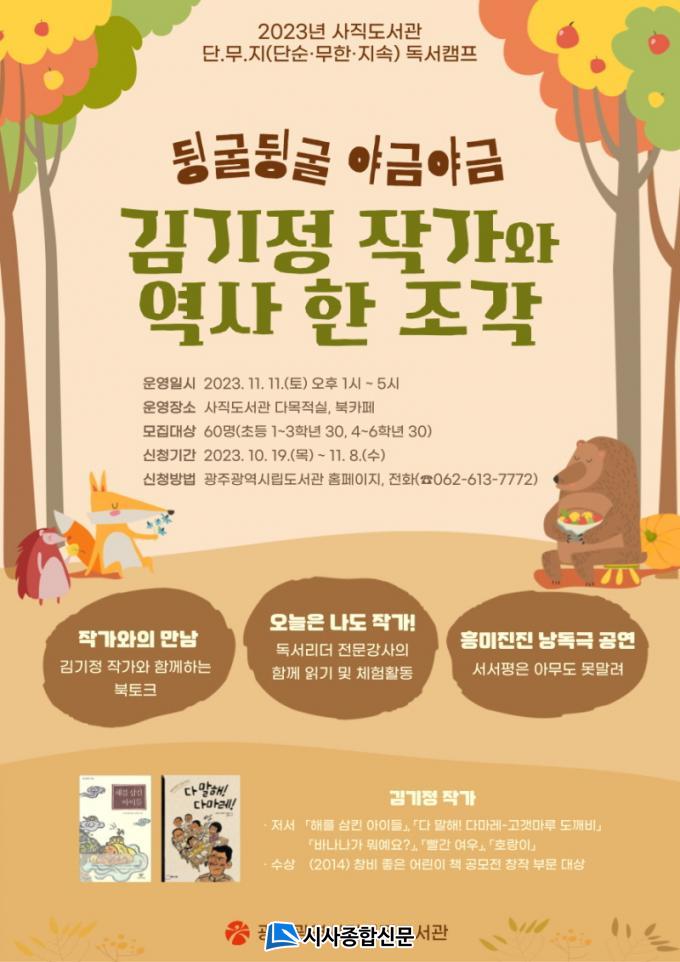 [½Ã»çÁ¾ÇսŹ® = ¿À½ÂÅà ±âÀÚ] ±¤ÁÖ±¤¿ª½Ã¸³»çÁ÷µµ¼°üÀº ±è±âÁ¤ ÀÛ°¡¿Í ÇÔ²²ÇÏ´Â ¡®´Ü¹«Áö(´Ü¼ø‧¹«ÇÑ‧Áö¼Ó) µ¶¼Ä·ÇÁ¡¯¸¦ ¿À´Â 11¿ù 11ÀÏ µµ¼°ü ´Ù¸ñÀû½Ç°ú ºÏÄ«Æä¿¡¼ ¿¬´Ù.