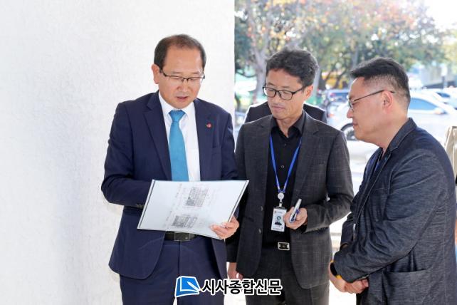 [½Ã»çÁ¾ÇսŹ® = °í¼º¹Î ±âÀÚ] °º´»ï Á¦ÁÖ½ÃÀåÀº Áö³ 25ÀÏ ¾ÖÇâ¿îµ¿Àå º»ºÎ¼® °³º¸¼ö »ç¾÷ Áذø ÇöÀåÀ» ¹æ¹®ÇØ °ü°èÀÚµéÀ» °Ý·ÁÇÏ°í ½Ã¼³À» Á¡°ËÇß´Ù.