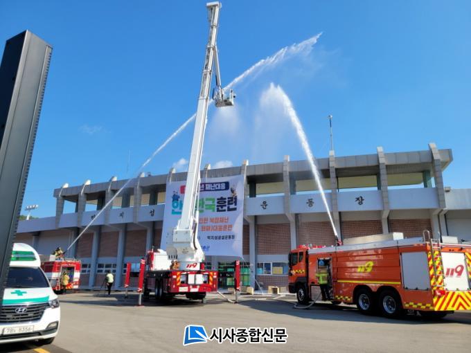 À̹ø ÈÆ·ÃÀº ÁöÁø¿¡ ÀÇÇØ ´ëÇüÈÀç°¡ ¹ß»ýÇϰí, Åë½Å½Ã¼³ µîÀÌ ¸¶ºñµÈ º¹ÇÕ Àç³ »óȲÀ» °¡Á¤ÇØ ÁøÇàµÆÀ¸¸ç, °íÈﱺÀÇ ÁÖ°üÇÏ¿¡ °íÈï¼Ò¹æ¼¡¤°íÈï°æÂû¼¡¤Çѱ¹Àü·Â°íÈïÁö»ç¡¤KT°íÈïÁö»ç µî 10¿© °³ À¯°ü±â°ü°ú ÇöÀå Âü°üÀÎÀ¸·Î Âü¿©ÇÑ ±º¹Î µî 150¿© ¸íÀÌ Âü¿©ÇÑ °¡¿îµ¥ À¯°ü±â°üº° Àåºñ¿Í Â÷·® µîÀÌ µ¿¿øµÅ ½ÇÁ¦ »óȲ°ú °°Àº ÈÆ·ÃÀÌ ½Ç½ÃµÆ´Ù.