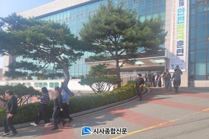 À̳¯ ¿ÀÈÄ 2½Ã ÈÀç ¹ß»ýÀ» ¾Ë¸®´Â °æº¸°¡ û»ç ³»¿¡ ÀÏÁ¦È÷ ¹ß·ÉµÊ¿¡ µû¶ó Àü Á÷¿ø°ú ³»¹æ ÁßÀÎ ¹Î¿øÀÎÀÌ ÀÚÀ§¼Ò¹æ´ëÀÇ ¾È³»¿¡ µû¶ó ½Å¼ÓÈ÷ °Ç¹° ¹ÛÀ¸·Î ´ëÇÇÇÏ´Â ÈÆ·ÃÀ» ½Ç½ÃÇßÀ¸¸ç ½ÇÁ¦ ÈÀç »óȲÀ» ¿¬ÃâÇϱâ À§ÇØ ¿¬¸·ÅºÀ¸·Î ÈÀç ¹ß»ý »óȲÀ» Á¶¼ºÇß´Ù.