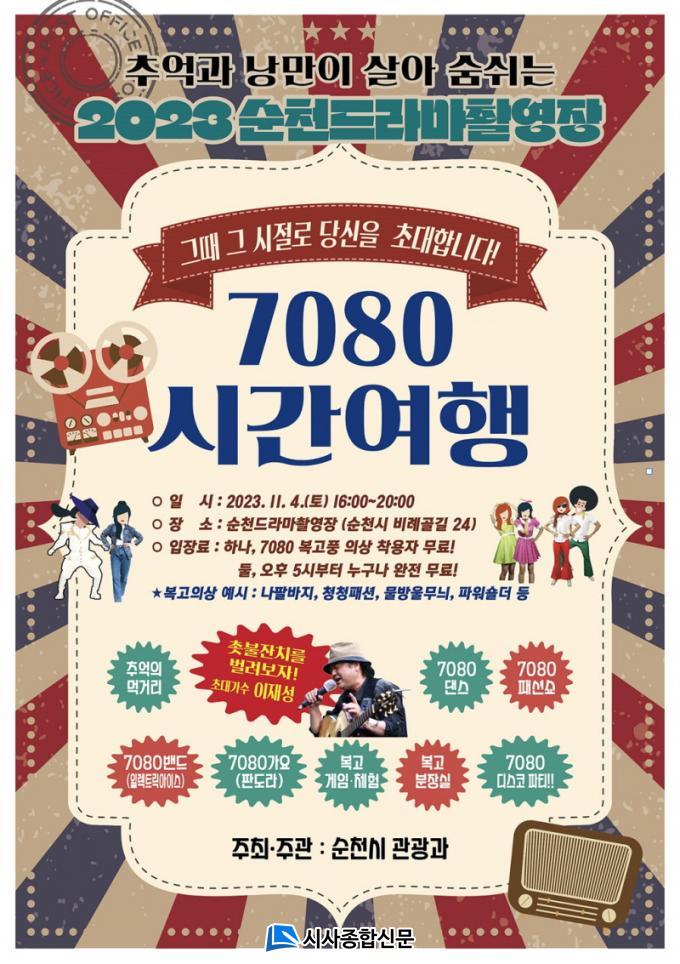 | ¼øÃµ½Ã, µå¶ó¸¶ÃÔ¿µÀå 7080½Ã°£¿©Çà Çà»ç °³ÃÖ |