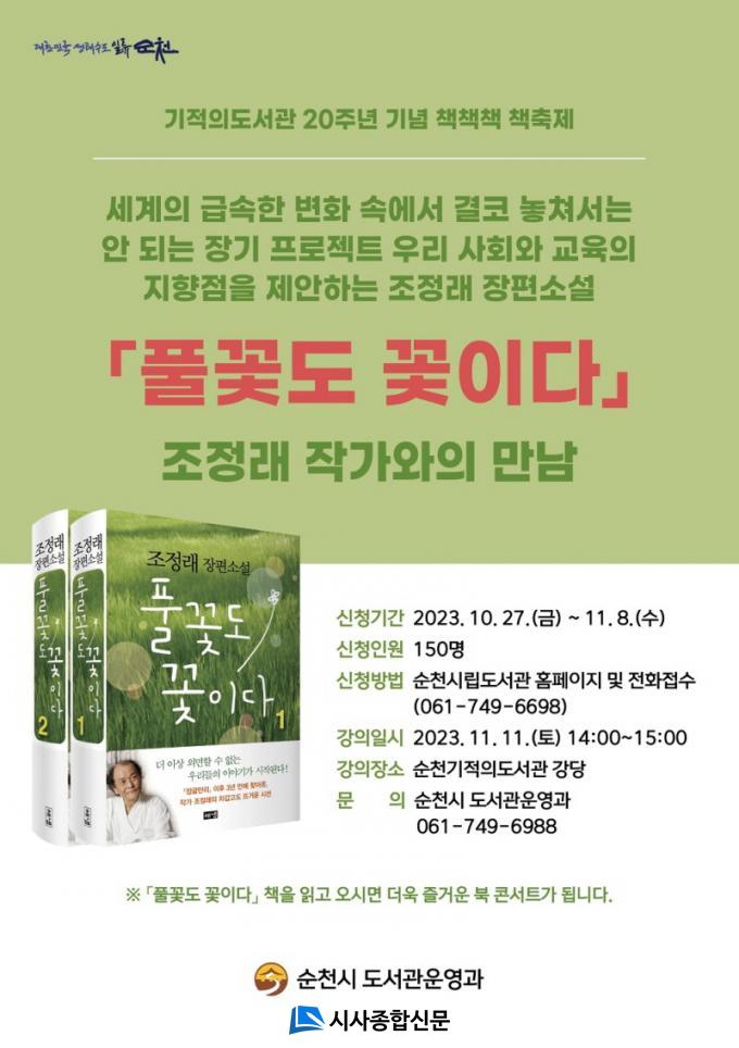 Á¶Á¤·¡ ÀÛ°¡ÀÇ Ã¥¡ºÇ®²Éµµ ²ÉÀÌ´Ù¡»¸¦ ÁÖÁ¦·Î ¿¸®´Â °¿¬Àº ¿ì¸®³ª¶óÀÇ ¿Ö°îµÇ°í ±¼ÀýµÈ ±³À°Çö½ÇÀ» ºñÆÇÇÏ°í ¿©±â¿¡ µû¸¥ ÀÛ°¡ÀÇ »ý°¢À» °øÀ¯ÇÏ´Â ½Ã°£ÀÌ µÉ ¿¹Á¤ÀÌ´Ù.