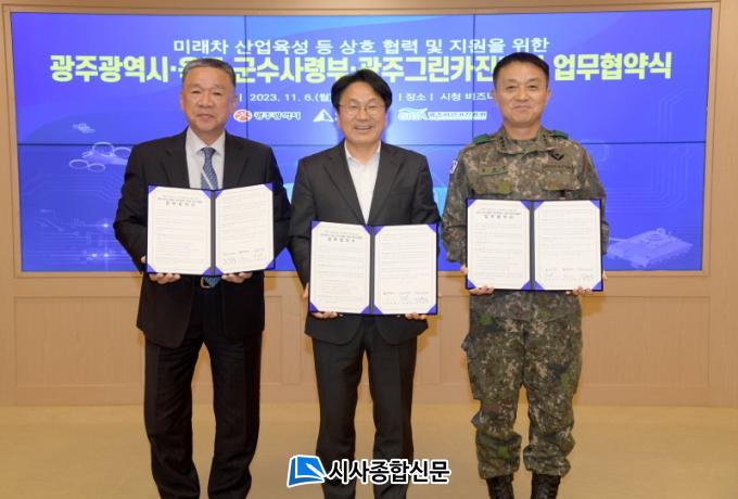 ±¤ÁÖ±¤¿ª½Ã(½ÃÀå °±âÁ¤)´Â 6ÀÏ ½Ãû ºñÁî´Ï½º·ë¿¡¼ À°±º ±º¼ö»ç·ÉºÎ, ±¤Áֱ׸°Ä«ÁøÈï¿ø°ú ÇÔ²² ±º¼ö»ê¾÷°ú ¿¬°èÇÑ ¹Ì·¡Â÷»ê¾÷À» À°¼ºÇϰí Ãë¾àÇÑ Áö¿ª ±º¼ö»ê¾÷À» Áö¿øÇÏ´Â ³»¿ëÀÇ ¡®¹Ì·¡Â÷»ê¾÷ À°¼º µî »óÈ£ Çù·Â ¹× ¹ßÀüÀ» À§ÇÑ ¾÷¹«Çù¾à¡¯À» ü°áÇß´Ù.