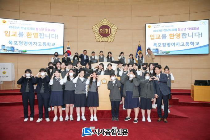 À̳¯ ÀÇȸ±³½Ç¿¡´Â ¸ñÆ÷½Ã ¼ÒÀç Á¤¸í¿©ÀÚ°íµîÇб³ Çлý 31¸íÀÌ Âü¿©ÇÑ °¡¿îµ¥ Á¶¿ÁÇö µµÀÇ¿øÀÌ Á÷Á¢ ÇлýµéÀ» ¸ÂÀÌÇÏ°í °Ý·ÁÇÏ¿´À¸¸ç, ÀÇȸ±³½Ç Âü¿© ÇлýµéÀº 1ÀÏ µµÀÇ¿øÀÇ ¿ªÇÒÀ» ¸Ã¾Æ ÀÔ±³½ÄÀ» ½ÃÀÛÀ¸·Î ÀÇ¿ø¼±¼, ÀÇÀå¼±°Å, Á¶·Ê¾È ó¸®, 3ºÐ ÀÚÀ¯¹ß¾ð µîÀÇ º»È¸ÀÇ ÀÇ»çÁøÇà ¼ø¼¿Í °°Àº ¹æ½ÄÀ¸·Î ¸ðÀÇÀÇȸ¸¦ üÇèÇß´Ù.