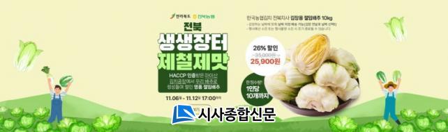 ¼±Âø¼ø 1,500°³ ÇÑÁ¤À¸·Î ÁøÇàµÇ´Â À̹ø Çà»ç´Â 6ÀϺÎÅÍ 12ÀϱîÁö ÀÏÁÖÀÏ µ¿¾È ÀüºÏ»ý»ýÀåÅÍ(freshjb.com) ȨÆäÀÌÁö ¶Ç´Â ¸ð¹ÙÀϾۿ¡¼ 1ÀÎ ÃÖ´ë 10°³ ¼ö·®À» 26% ÇÒÀÎµÈ °¡°Ý(25,900¿ø)À¸·Î ¿¹¾à ±¸¸Å °¡´ÉÇϸç, ÁÖ¹® °ÇÀº °¢°¢ÀÇ ±èÀå½Ã±â¿¡ ¸ÂÃç ¼±ÅÃÇÑ ÁöÁ¤ÀÏ¿¡ µû¶ó 11¿ù 15ÀϺÎÅÍ 12¿ù 1ÀϱîÁö ¼øÂ÷ÀûÀ¸·Î ¹«·á ¹è¼ÛÇÒ ¿¹Á¤ÀÌ´Ù. ¶ÇÇÑ º» ÇÒÀο¡ ´õÇØ, ÀüºÏÀºÇà Ä«µå·Î 2¸¸¿ø ÀÌ»ó ±¸¸Å ½Ã, 10% Ãß°¡ û±¸ÇÒÀÎÀ» ¹ÞÀ» ¼ö ÀÖ´Ù.