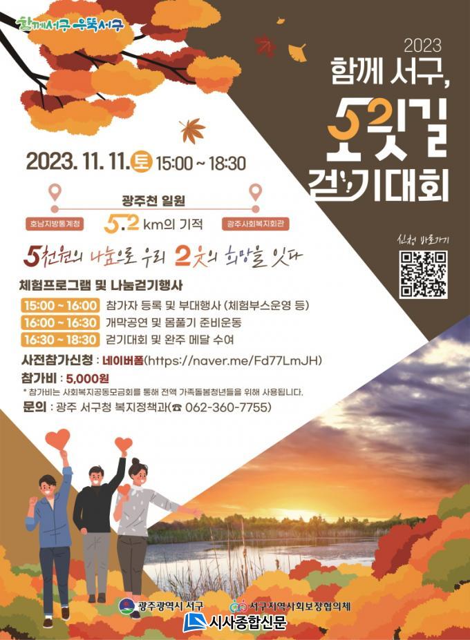 ¼±¸ 18°³µ¿ Áö¿ª»çȸº¸ÀåÇùÀÇü À§¿øµéÀÌ ÁÖ°üÇÏ´Â À̹ø °È±â´ëȸ´Â ±¤ÁÖõ µ¿Ãµ±³ ÇϺο¡¼ ½ÃÀÛÇØ ±¤¿î±³ ÇϺθ¦ ¹ÝȯÁ¡À¸·Î 5.2km¸¦ °È´Â Çà»ç·Î, ÁֹεéÀÇ ÀÚ¹ßÀûÀÎ Âü¿©·Î ³ª´®¹®È¸¦ È®»êÇϱâ À§ÇØ ÃßÁøµÆ´Ù.