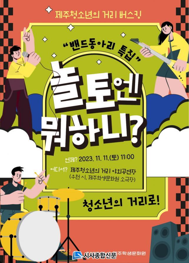 [½Ã»çÁ¾ÇսŹ® = °í¼º¹Î ±âÀÚ] Á¦ÁÖÇлý¹®È¿ø(¿øÀå ¾ÈÈñ¼÷)Àº û¼Ò³âÀÇ °Å¸® ¹ö½ºÅ·,¡®³îÅä¿£ ¹¹ÇÏ´Ï? û¼Ò³âÀÇ °Å¸®·Î!¡¯¸¦ 11¿ù 11ÀÏ(Åä) ¿ÀÀü 11½Ã û¼Ò³âÀÇ °Å¸® ¾ß¿Ü°ø¿¬Àå(¿ìõ ½Ã Á¦ÁÖÇлý¹®È¿ø ¼Ò±ØÀå)¿¡¼ ¼±º¸ÀδÙ.
