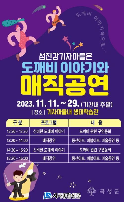 ¸ÅÁ÷°ø¿¬Àº ¿ÀÈÄ 1½Ã 20ºÐ°ú 3½Ã 20ºÐÀ¸·Î ÇÏ·ç¿¡ 2Â÷·Ê ½Ç½ÃµÈ´Ù. ÀÌ °ø¿¬Àº ¿À´Â 26ÀϱîÁö ¸¶¼ú°ø¿¬°ú dz¼±¾ÆÆ®·Î ±¸¼ºµÈ ¿¹¼ú°ø¿¬À¸·Î ÆîÃÄÁø´Ù. ¸ÅÁ÷ °ø¿¬ Áß¿¡ ¾î¸°ÀÌ °ü±¤°´ÀÌ ¼±È£ÇÏ´Â ¡®Ç³¼±¡¯À» °¡Áö°í µµ±úºñ ¸ð¾ç, ±âÂ÷ ¸ð¾ç µîÀ¸·Î ¸¸µé¾î ¾î¸°ÀÌ °ü±¤°´¿¡°Ô ³ª´²ÁÖ´Â Çà»çµµ ¸¶·ÃµÆ´Ù.