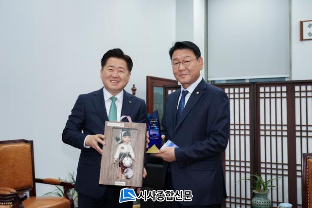 ¿À¿µÈÆ Áö»ç´Â 9ÀÏ ¼¿ï ¿©Àǵµ ±¹È¸¸¦ ¹æ¹®ÇØ ¹ÚÁ¤ ±¹È¸ ȯ°æ³ëµ¿À§¿øÈ¸ À§¿øÀå(´õºÒ¾î¹ÎÁִ硤°æ±â ÆÄÁÖ½ÃÀ»)°ú ±è±³Èï ±¹È¸ ÇàÁ¤¾ÈÀüÀ§¿øÀå(´õºÒ¾î¹ÎÁִ硤ÀÎõ ¼°©)À» ÀÕ´Þ¾Æ ¸¸³ª ¸í¿¹µµ¹ÎÁõÀ» °Ç³Ù´Ù.