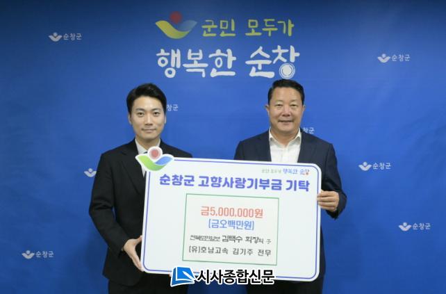10ÀÏ ±º¿¡ µû¸£¸é ±èÅüö ÀüºÏµµ¹ÎÀϺ¸ ȸÀåÀÇ °íÇâÀ» »ç¶ûÇÏ´Â ¸¶À½À» À̾î¹Þ¾Æ ¾Æµé ±è±âÁÖ È£³²°í¼Ó Àü¹«°¡ °íÇâ»ç¶û±âºÎ±Ý °³ÀÎ ÃÖ°í¾×ÀÎ 500¸¸¿øÀ» ±âŹÇß´Ù°í ¹àÇû´Ù.