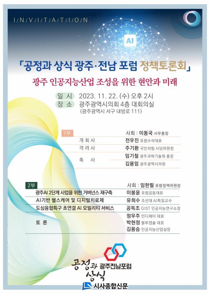 ½Ã¹Î´Üü¸¦ ´ëÇ¥ÇØ °øÁ¤°ú »ó½Ä ±¤ÁÖÀü³²Æ÷·³ ¼ö¼®´ëÇ¥ÀÎ Àü¿ìÁø Àü³²´ë ±³¼ö´Â ¡°À̹ø Åä·Ðȸ¸¦ ÅëÇØ ±¤ÁÖ AI»ê¾÷ÀÇ ¹ßÀü ¹æÇâÀ» ¸ð»öÇϰí, ±¤ÁÖ½Ã¿Í Áö¿ª»çȸÀÇ AI»ê¾÷ À°¼º Á¤Ã¥¿¡ ±â¿©ÇϰíÀÚ ÇÑ´Ù¡±°í ¸»Çß´Ù.
