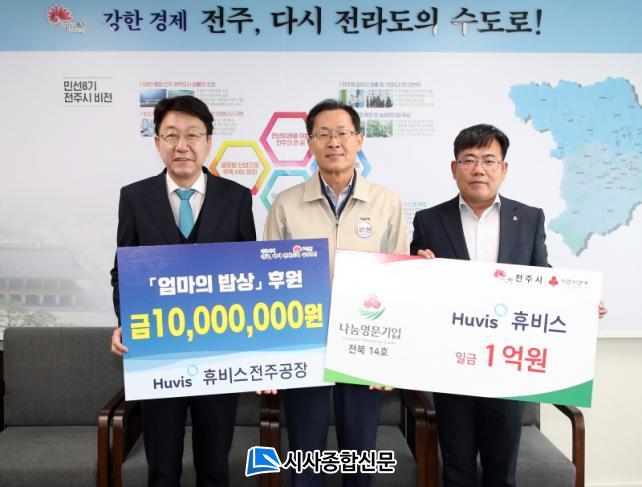 ÀÌ ÀÚ¸®¿¡¼ ¢ßÈÞºñ½º ÀüÁÖ°øÀåÀº ÀüÁÖÁö¿ª Àú¼Òµæ Ãë¾à°èÃþ ¾Æµ¿¿¡°Ô ¾ÆÄ§¹äÀ» Àü´ÞÇÏ´Â ¡®¾ö¸¶ÀÇ ¹ä»ó¡¯ »ç¾÷À» À§ÇÑ ¼º±Ý 1000¸¸ ¿øÀ» ±âºÎÇß´Ù.