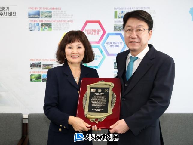 ¿ì¹ü±â ÀüÁÖ½ÃÀåÀº 14ÀÏ ÀüÁÖ½ÃÀå½Ç¿¡¼ Á¤º´¾Ö ¹Ì±¹ »÷µð¿¡À̰í Àڸŵµ½ÃÇùȸÀåÀ» ¸¸³ª ¾ç µµ½Ã°£ Çù·Â ¹æ¾ÈÀ» ³íÀÇÇß´Ù. À̳¯ ¸é´ãÀº Åäµå ±Û·Î¸®¾Æ »÷µð¿¡ÀÌ°í ½ÃÀåÀÇ ¿äûÀ¸·Î ÀüÁÖ-»÷µð¿¡ÀÌ°í °£ 40Áֳ⠱â³ä ¼ÇѰú ±â³äÆÐ¸¦ Àü´ÞÇϱâ À§ÇØ ¼º»çµÈ °ÍÀ¸·Î ¾Ë·ÁÁ³´Ù.