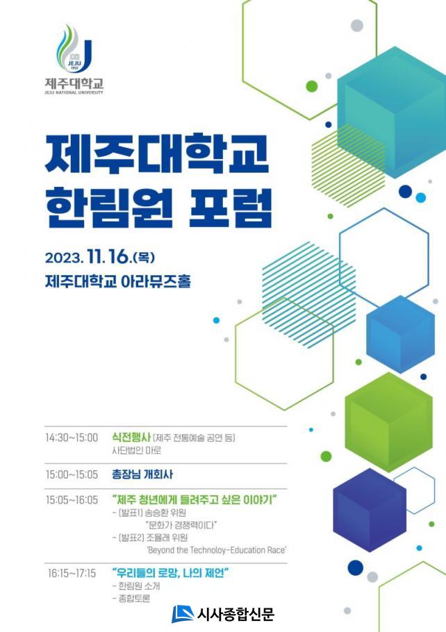 ±èÀÏȯ Á¦ÁÖ´ëÇб³ ÃÑÀåÀº ¡°ÇѸ²¿øÀº ´ëÇÐ ¿ÜºÎÀÇ ´Ù¾çÇÑ ½Ã°¢À» ´ëÇÐ ³»¿¡ Àü´ÞÇÔÀ¸·Î½á, ´ëÇÐÀÇ °æÀï·ÂÀ» °ÈÇÏ°í ´ëÇÐÀÌ Áö¿ª»çȸ¿Í µ¿¹Ý¼ºÀåÇÒ ¼ö ÀÖ´Â ¹æ¾ÈÀ» Á¦½ÃÇÒ °ÍÀ̸ç, Æ÷·³À» ÅëÇØ Çлýµé°ú ÇÔ²² ÀÌ·± ³»¿ëÀ» °øÀ¯ÇÒ ¼ö ÀÖ´Â À¯ÀÍÇÑ ½Ã°£ÀÌ µÇ±â¸¦ ±â´ëÇÑ´Ù.¡±¶ó°í ÀüÇß´Ù.