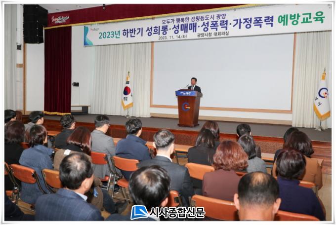 [½Ã»çÁ¾ÇսŹ® = Àå¹Î±Ô ±âÀÚ] ±¤¾ç½Ã´Â 14ÀÏ ½Ãû ´ëȸÀǽǿ¡¼ Àü Á÷¿øÀ» ´ë»óÀ¸·Î 4´ë Æø·Â(¼ºÈñ·Õ‧¼º¸Å¸Å‧¼ºÆø·Â‧°¡Á¤Æø·Â) ¹æÁö¸¦ À§ÇÑ ÇϹݱâ 4´ë Æø·Â ¿¹¹æ ±³À°À» ½Ç½ÃÇß´Ù.