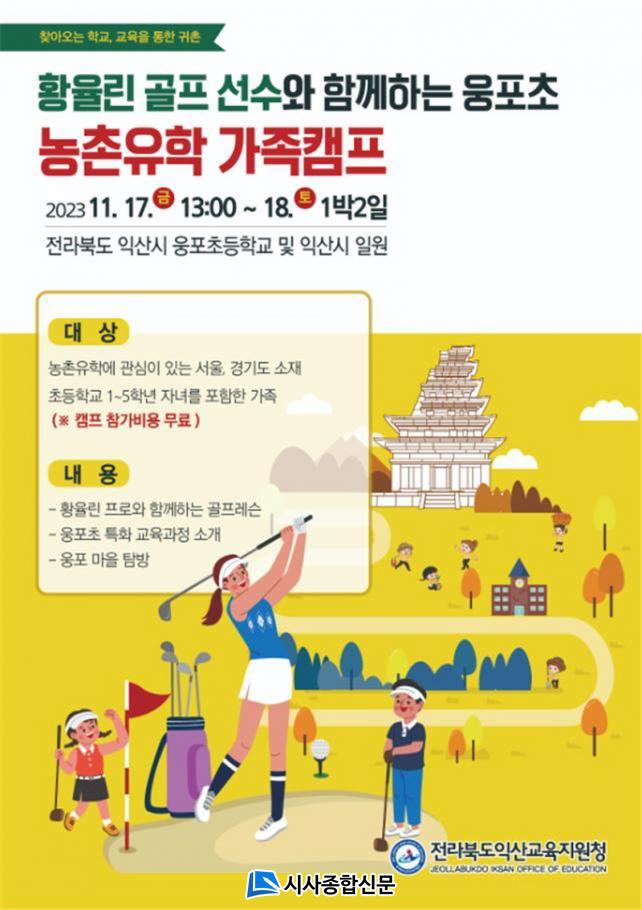 Àͻ걳À°Áö¿øÃ»(±³À°Àå ±èº¹Èñ)Àº ¿À´Â 17~18ÀÏ 1¹Ú 2ÀÏÀÇ ÀÏÁ¤À¸·Î ¼¿ï ¹× °æ±âµµ ÃʵîÇлý °¡Á· 40¿© ¸íÀ» ´ë»óÀ¸·Î ÀÍ»ê½Ã ¿õÆ÷ÃʵîÇб³ ¹× ¿õÆ÷¸é ÀÏ´ë¿¡¼ ¡®È²À²¸° °ñÇÁ¼±¼ö¿Í ÇÔ²²ÇÏ´Â ¿õÆ÷ÃÊ ³óÃÌÀ¯ÇÐ °¡Á·Ä·ÇÁ¡¯¸¦ ½Ç½ÃÇÑ´Ù°í ¹àÇû´Ù.