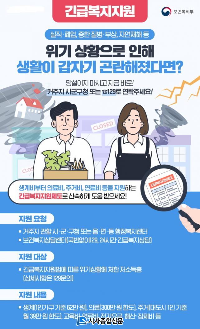 ±ä±Þº¹ÁöÁ¦µµ´Â ÁÖ¼ÒµæÀÚ ¶Ç´Â ºÎ¼ÒµæÀÚÀÇ ½ÇÁ÷À̳ª »ç¸Á, ÁßÇÑ Áúº´¡¤ºÎ»ó, ÈÀç µî °©ÀÛ½º·¯¿î À§±â »óȲÀ¸·Î »ý°èÀ¯Áö°¡ °ï¶õÇÑ Àú¼ÒµæÃþ °¡±¸¿¡ »ý°èºñ, ÀÇ·áºñ µîÀ» Áö¿øÇØ À§±â »óȲ¿¡ óÇÑ °¡±¸ÀÇ »ýȰ ¾ÈÁ¤¿¡ µµ¿òÀ» ÁÖ´Â Á¦µµ´Ù.