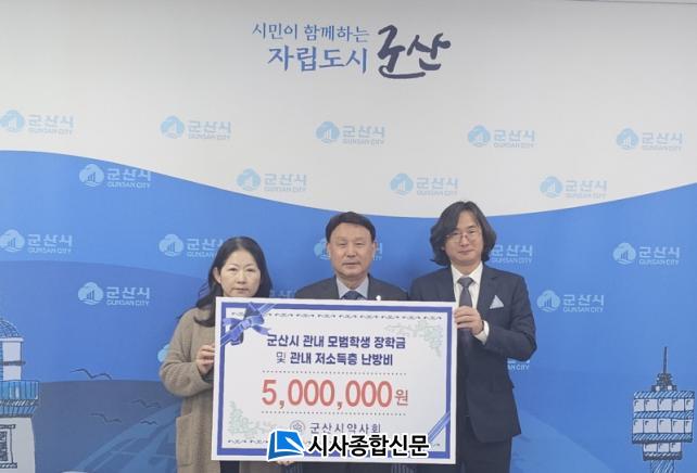 [½Ã»çÁ¾ÇսŹ® = ±è¿¬Èñ ±âÀÚ] ±º»ê½Ã´Â Áö³ 16ÀÏ ±º»ê½Ã¾à»çȸ(ȸÀå °Á¾´ë, °Ç°Àϵî¾à±¹)°¡ ¾î·Á¿î °¡Á¤È¯°æ ¼Ó¿¡¼µµ ¸ð¹üÀûÀ¸·Î Çб³»ýȰÀ» ÇÏ´Â Çлý¿¡°Ô ÀåÇÐ±Ý 450¸¸¿ø°ú Àú¼ÒµæÃþ ´ë»ó ³¹æºñ 50¸¸¿øÀ» ±âŹÇß´Ù°í ¹àÇû´Ù.