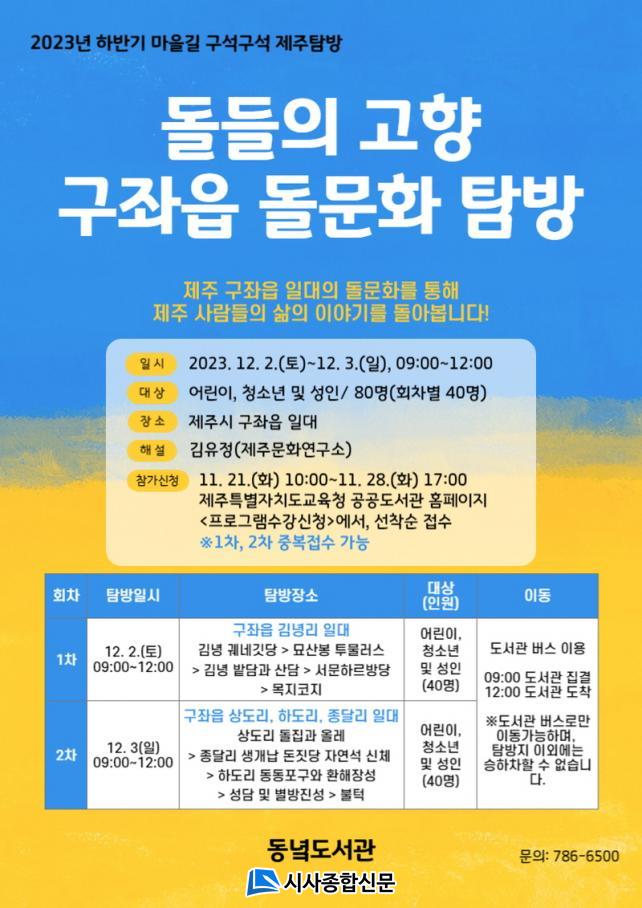 2Â÷ ޹æÀº 12¿ù 3ÀÏ(ÀÏ) ¿ÀÀü 9½Ã~12½Ã±îÁö Á¦Áֽà ±¸ÁÂÀ¾ »óµµ¸®, Çϵµ¸® ¹× Á¾´Þ¸® ÀÏ´ëÀÇ µ¹Áý°ú ¿Ã·¹, È¯ÇØÀ强, º°¹æÁø¼º µîÀ» ã¾Æ Á¦ÁÖ »ç¶÷µéÀÇ »îÀÇ À̾߱⸦ µé¾îº¸´Â ½Ã°£À» °®´Â´Ù.