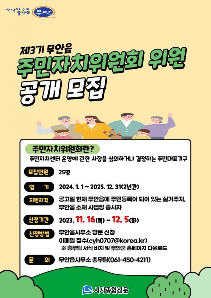 Á¦3±â ÁÖ¹ÎÀÚÄ¡À§¿ø ¸ðÁýÀοøÀº 25¸í À̳»À̸ç, ½ÅûÀÚ°ÝÀº °ø°íÀÏ ÇöÀç ¹«¾ÈÀ¾ ³»¿¡ ÁÖ¼ÒÁö¸¦ µÎ°í ½ÇÁ¦·Î °ÅÁÖÇÏ´Â ÀÚ·Î ºÀ»çÁ¤½Å°ú »ç¸í°¨ÀÌ ÅõöÇϸç ÀÚÄ¡À§¿øÀ¸·Î¼ ´É·Â°ú ¿ÀǸ¦ °¡Áø »ç¶÷ÀÌ¸é µÈ´Ù.