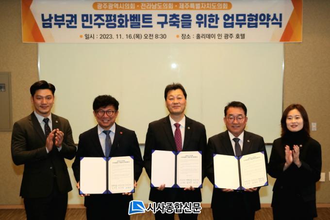 [½Ã»çÁ¾ÇսŹ® = ¿À½ÂÅà ±âÀÚ] Àü¶ó³²µµÀÇȸ(ÀÇÀå ¼µ¿¿í)´Â 16ÀÏ È¦¸®µ¥ÀÌÀÎ ±¤ÁÖ ¹ÌÆÃ·ë¿¡¼ ±¤ÁÖ±¤¿ª½ÃÀÇȸ, Á¦ÁÖµµÀÇȸ¿Í ÇÔ²² ¡®³²ºÎ±Ç ½Ã‧µµÀÇȸ ¹ÎÁÖÆòȺ§Æ® ±¸ÃàÀ» À§ÇÑ ¾÷¹«Çù¾à¡¯À» ü°áÇß´Ù°í ¹àÇû´Ù.