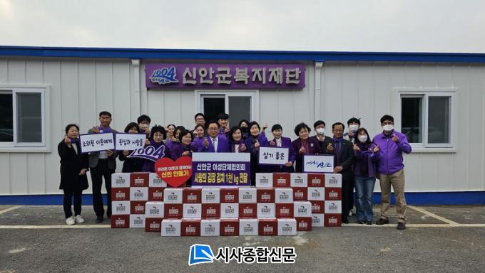 ƯÈ÷, ½Å¾È¿¡¼ »ý»êÇÑ ³ó»ê¹°ÀΠõÀÏ¿°°ú »õ¿ìÁ£, ´ëÆÄ, °íÃß µî ±èÀå Àç·á¸¦ »ç¿ëÇØ ¸ÀÀÖ´Â ±èÄ¡¸¦ ¼±º¸¿´À¸¸ç, ±èÀ籤 ½Å¾È ºÎ±º¼ö¿Í ½Å¾È±º ¿©¼º´ÜüÇùÀÇȸ ÀÓ¿ø 30¸íÀÌ Á÷Á¢ ¸¸µç ±èÄ¡ 1õkgÀ» ½Å¾È±ºº¹ÁöÀç´ÜÀ» ÅëÇØ °ü³» º¹Áö½Ã¼³¿¡ Àü´ÞÇß´Ù.