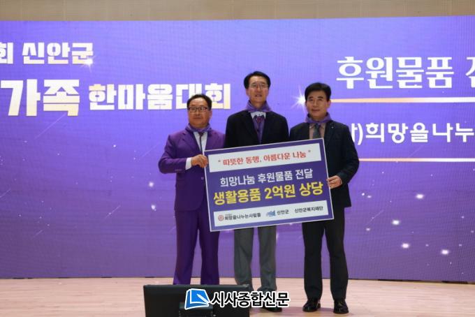 À̳¯ Àü´Þ¹ÞÀº »ç¶ûÀÇ ¹°Ç°Àº ÃÑ 2¾ï ¿ø »ó´çÀÇ ¼¼Á¦, ¼¤Çª, ±×¸© µîÀ¸·Î ½Å¾È±ºº¹ÁöÀç´Ü(ÀÌ»çÀå ÀÌÃæ¸¸)À» ÅëÇØ Ãë¾à°èÃþ°ú º¹Áö½Ã¼³¿¡ Àü´ÞÇÒ ¿¹Á¤ÀÌ´Ù.