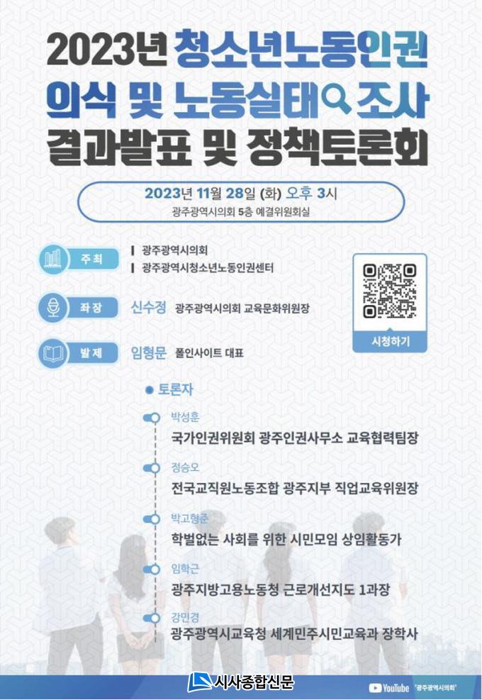 À̳¯ ÁÂÀåÀ¸·Î ½Å¼öÁ¤ ½ÃÀÇ¿øÀÌ, Åä·ÐÀڷδ ¹Ú¼ºÈÆ ±¤ÁÖÀαǻ繫¼Ò ±³À°Çù·ÂÆÀÀå, Á¤½Â¿À Àü±³Á¶ ±¤ÁÖÁöºÎ Á÷¾÷±³À°À§¿øÀå, ¹Ú°íÇüÁØ Çйú¾ø´Â »çȸ¸¦ À§ÇÑ ½Ã¹Î¸ðÀÓ »óÀÓȰµ¿°¡, ÀÓÇб٠±¤ÁÖÁö¹æ°í¿ë³ëµ¿Ã» ±Ù·Î°³¼±1°úÀå, °¹Î°æ ±¤ÁÖ±¤¿ª½Ã±³À°Ã» ¼¼°è¹ÎÁֽùα³À°°ú ÀåÇл簡 û¼Ò³â ³ëµ¿À뱂 °³¼±À» À§ÇÑ Á¤Ã¥µéÀ» Á¦¾ÈÇÒ ¿¹Á¤ÀÌ´Ù.