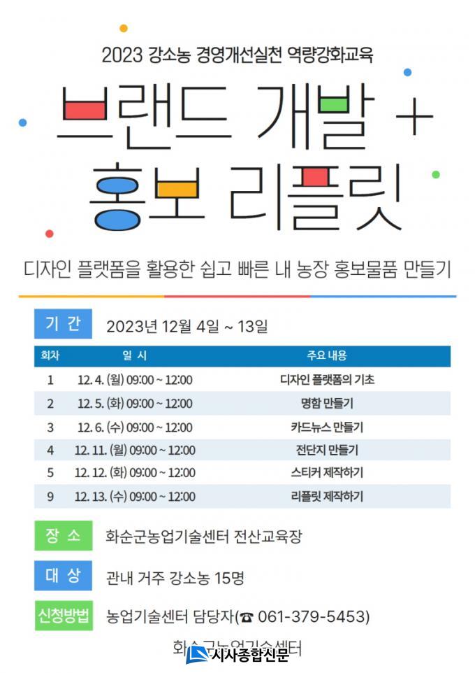 ±ºÀº SNS¸¦ Ȱ¿ëÇÑ ³ó°¡ Á÷°Å·¡°¡ Ȱ¼ºÈµÇ¸é¼ Ãß¼¼(Æ®·»µå)¿¡ ¸ÂÃç ½±°í ºü¸£°Ô ´ëóÇÒ ¼ö ÀÖµµ·Ï µðÀÚÀÎ Ç÷§ÆûÀ» Ȱ¿ë, ³ó¾÷ÀÎ ½º½º·Î ¸ÂÃãÇü È«º¸ ¹°Ç°À» Á¦ÀÛÇÏ´Â °ÀÇ·Î ±¸¼ºÇÏ¿´´Ù. ±³À° ½ÅûÀº 11¿ù 27ÀϺÎÅÍ ¹æ¹® ȤÀº ÀüÈ·Î °¡´ÉÇϸç, ÀÚ¼¼ÇÑ »çÇ×Àº ³ó¾÷±â¼ú¼¾ÅÍ ´©¸®Áý ±³À° ¾È³»¸¦ Âü°íÇϰųª ³ó¾÷±â¼ú¼¾ÅÍ ³óÃÌÁö¿ø°ú ¿ª·®°³¹ßÆÀ(061-379-5453)À¸·Î ¹®ÀÇÇÏ¸é µÈ´Ù.