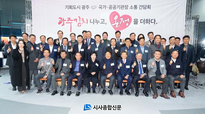 À̳¯ Çà»ç´Â ° ½ÃÀå°ú ±â°üÀåµéÀÌ ¼¼ ¹øÂ° ¸¸³ª´Â ÀÚ¸®·Î ¡®±¤ÁÖ±èÄ¡ ³ª´©°í, ¿ÂÁ¤À» ´õÇÏ´Ù¡¯¶ó´Â ÁÖÁ¦·Î ÁøÇàµÆ´Ù. ¸ÕÀú ±èÄ¡¹Ú¹°°ü¿¡¼ »çÀü °£´ãȸ¸¦ °®°í, ÇÔ²² ±èÀåÀ» ´ã±×°í Á¤À» ³ª´©´Â ½Ã°£À¸·Î À̾îÁ³´Ù.Âü¼®ÀÚµéÀº ±¤ÁÖÀÇ ´ëÇ¥ À½½ÄÀÎ ¡®±¤ÁÖ±èÄ¡¡¯¸¦ ¼Ò°³Çϰí, ±èÄ¡ ±¤ÁÖ¸¦ ´õ ¾Ë¸®°í ã°Ô ÇÏ´Â ¸Å°³Ã¼·Î Ȱ¿ëÇØ¾ß ÇÑ´Ù°í ÀǰßÀ» ¸ð¾Ò´Ù. À̾î ÇàÁ¤¾ÈÀüºÎ ÁÖ°üÀ¸·Î Àü±¹ 243°³ Áö¹æÀÚÄ¡´Üü¿¡¼ µ¿½Ã¿¡ ÁøÇàµÇ´Â ¡®±¹¹Î´ëÅëÇÕ ±èÀåÇà»ç¡¯¿¡ Âü¿©Çß´Ù.