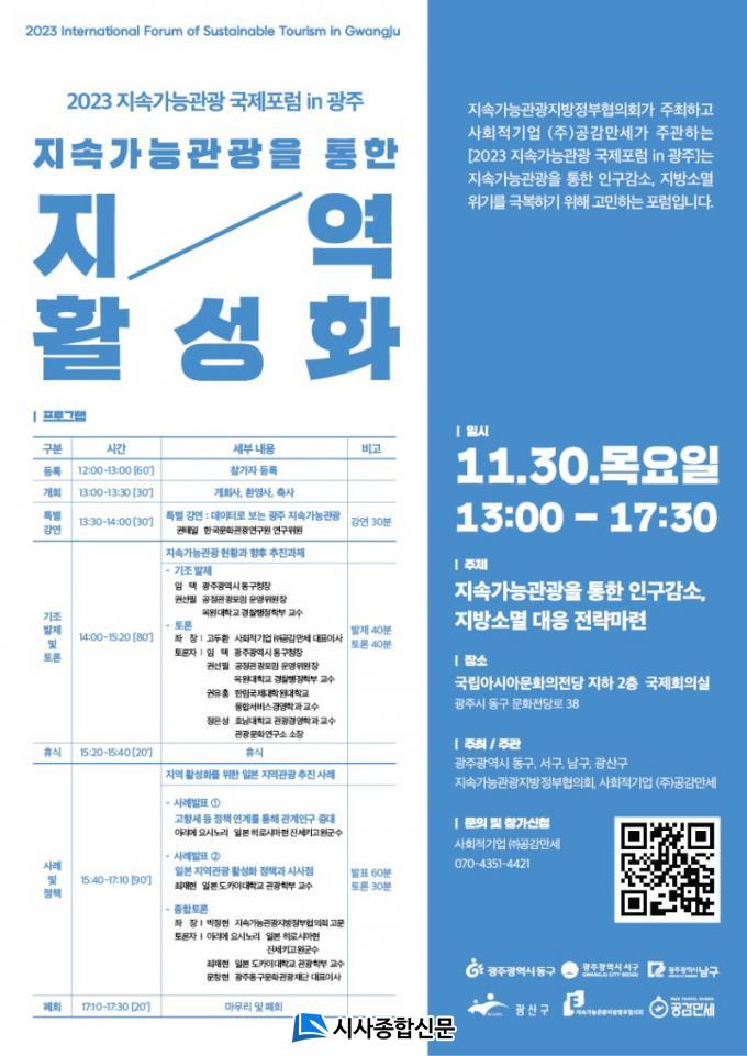 ¡®Áö¼Ó°¡´ÉÁö¹æÁ¤ºÎÇùÀÇȸ¡¯(»óÀÓȸÀå ÀÓÅÃ)¿Í ±¤ÁÖ µ¿±¸¡¤¼±¸¡¤³²±¸¡¤±¤»ê±¸°¡ °øµ¿ ÁÖÃÖÇÏ´Â À̹ø Æ÷·³Àº ¡®Áö¼Ó°¡´É°ü±¤À» ÅëÇÑ Áö¿ª Ȱ¼ºÈ¡¯¸¦ ÁÖÁ¦·Î Áö¼Ó°¡´É°ü±¤À» ¹ÙÅÁÀ¸·Î Àα¸°¨¼Ò¿Í Áö¹æ¼Ò¸ê À§±â¸¦ ±Øº¹Çϱâ À§ÇØ °í¹ÎÇÏ´Â ÀÚ¸®°¡ µÉ ¿¹Á¤ÀÌ´Ù.