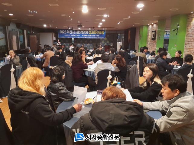 ÀÍ»ê ±Ã ¿þµùȦ 4Ãþ ¿¬È¸Àå¿¡¼ ÁøÇàµÈ »çȸÀû°æÁ¦ ¼º°úÈ®»êÆ÷·³Àº ÀÍ»ê½Ã (¿¹ºñ)»çȸÀû±â¾÷, ¸¶À»±â¾÷, Çùµ¿Á¶ÇÕ, ÀÚȰ±â¾÷ ¾÷ü°¡ Âü¿©ÇÑ °¡¿îµ¥ 2023³â »çȸÀû°æÁ¦ ±â¾÷ °£ »ç·Ê¹ßÇ¥ µî ¼º°ú¸¦ °øÀ¯ÇÏ°í ³»³âµµ »ç¾÷¿¡ ´ëÇØ ¿¶í Åä·ÐÀ» ÆîÃÆ´Ù.