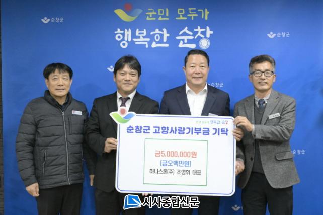 | Çϳª½ºÅæ(ÁÖ) Á¶¿µÈÖ ´ëÇ¥, ¼øÃ¢±º¿¡ °íÇâ»ç¶û±âºÎ±Ý ÃÖ°í¾× 500¸¸¿ø ±âŹ |