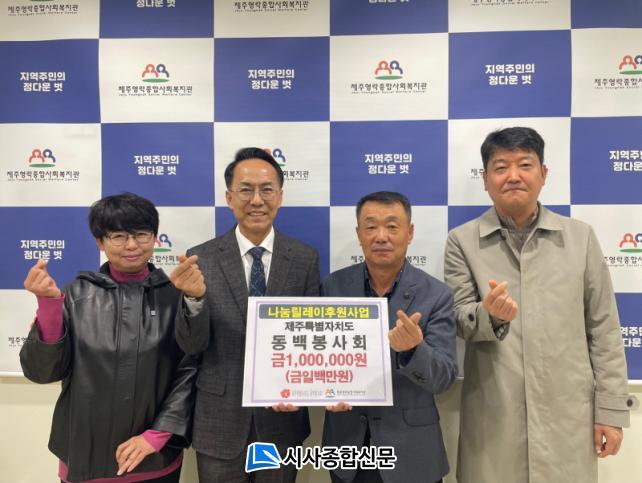 [½Ã»çÁ¾ÇսŹ® = °í¼º¹Î ±âÀÚ] Á¦ÁÖÆ¯º°ÀÚÄ¡µµ µ¿¹éºÀ»çȸ(ȸÀå ±èµ¿Çõ)´Â Áö³ 27ÀÏ Á¦ÁÖ¿µ¶ôÁ¾ÇÕ»çȸº¹Áö°ü(°üÀå ÀÌ»ó¾ð) »ç·Ê°ü¸®»ç¾÷ÆÀÀÇ ³ª´®ÈÄ¿ø¸±·¹ÀÌ»ç¾÷¿¡ µ¿ÂüÇϸç ÈÄ¿ø±ÝÀϹ鸸¿øÀ» ±âºÎÇÏ¿´´Ù.