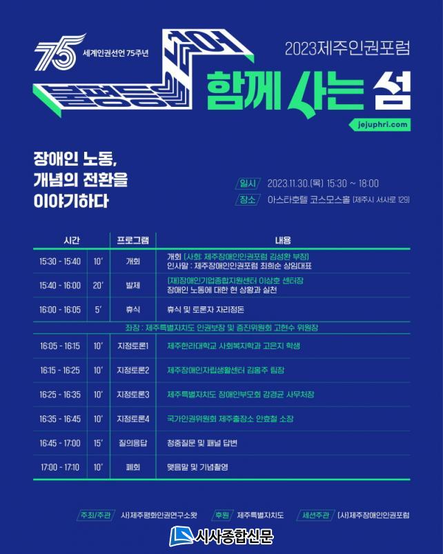 ÇÑÆí, À̹ø Åä·Ðȸ´Â »ç´Ü¹ýÀÎ Á¦ÁÖÆòÈÀαǿ¬±¸¼Ò ¿ÓÀÌ ÁÖÃÖ¡¤ÁÖ°üÇÏ´Â 2023 Á¦ÁÖÀÎ±ÇÆ÷·³ ¡®ºÒÆòµîÀ» ³Ñ¾î ÇÔ²² »ç´Â ¼¶¡¯ÀÇ Á¦2¼¼¼ÇÀ¸·Î ÀüüÇà»ç´Â 11¿ù 30Àϰú 12¿ù 1ÀÏ ¾çÀϰ£ ÁøÇàµÈ´Ù.