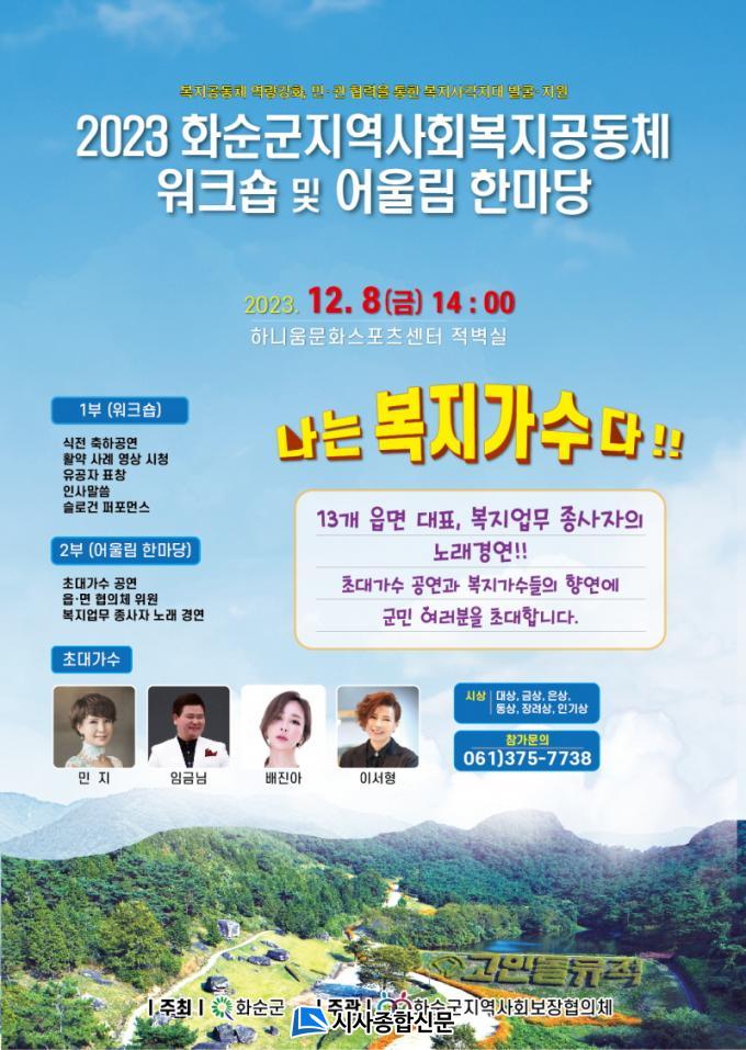 º¹Áö°øµ¿Ã¼ ¿ª·® °È¿Í ¹Î․°ü Çù·ÂÀ» ÅëÇÑ º¹Áö»ç°¢Áö´ë ¹ß±¼․Áö¿øÀ» À§ÇØ ¸¶·ÃµÈ À̹ø Çà»ç´Â Àü³² ȼø±º(±º¼ö ±¸º¹±Ô)ÀÌ ÁÖÃÖÇϰí ȼø±ºÁö¿ª»çȸº¸ÀåÇùÀÇü(¹Î°£°øµ¿À§¿øÀå ±è¼º½Ä)°¡ ÁÖ°üÇÑ´Ù.