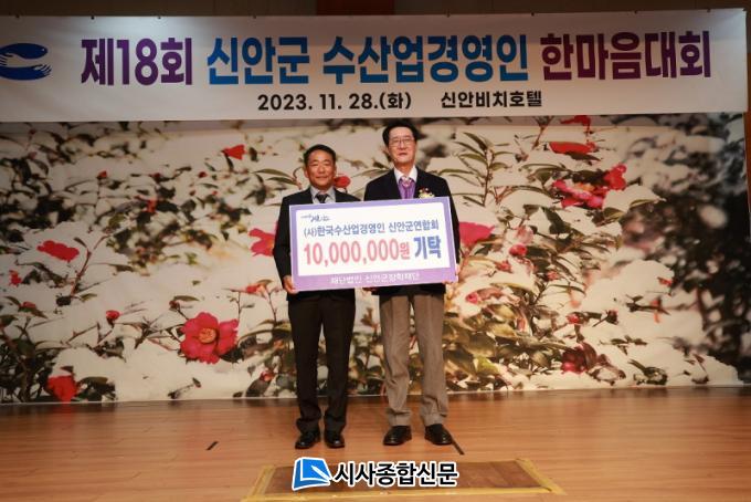 [½Ã»çÁ¾ÇսŹ® = ¿À½ÂÅà ±âÀÚ] (»ç)Çѱ¹¼ö»ê¾÷°æ¿µÀÎ ½Å¾È±º¿¬ÇÕȸ(ȸÀå ÃÖ¸í°©)´Â Áö³ 28ÀÏ ½Å¾È±º ¼ö»ê¾÷°æ¿µÀÎ ÇѸ¶À½´ëȸ(½Å¾ÈºñġȣÅÚ)¿¡¼ ½Å¾È±ºÀåÇÐÀç´Ü(ÀÌ»çÀå ¹Ú¿ì·®)¿¡ 1õ¸¸ ¿øÀ» Àü´ÞÇß´Ù°í ¹àÇû´Ù.