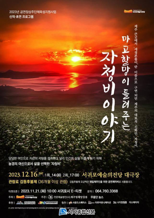 À̹ø °ø¿¬Àº 2023 °ø¿¬Àå»óÁÖ´ÜüÀ°¼ºÁö¿ø»ç¾÷ ¼±Á¤´Üü (»ç)Á¦ÁÖºô·¹¾Ó»óºíÀÌ ÃÊ¿¬ÇÏ´Â ÇÁ·Î±×·¥À¸·Î Á¦ÁÖ Å«±Â¿¡¼ ¡®¼¼°æº»Ç®ÀÌ¡¯¶õ À̸§À¸·Î ±¸¿¬µÇ´ø Á¦ÁÖÀÇ ´ëÇ¥Àû ½ÅÈÀÎ ¡®ÀÚûºñ¡¯ À̾߱⸦ À½¾Ç±Ø Çü½ÄÀ¸·Î Ç¥ÇöÇÑ °ø¿¬ÀÌ´Ù.