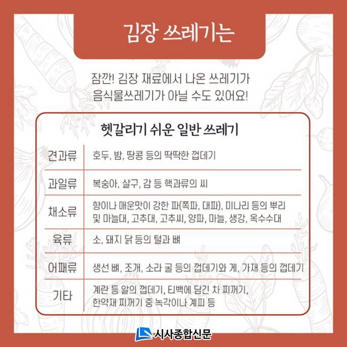 ÁÖ¿ä ³»¿ëÀ¸·Î´Â ±èÀåö µ¿¾È ä¼Ò¸¦ ´Ùµë´Â °úÁ¤¿¡¼ ³ª¿À´Â Åë¹èÃß, ¹èÃåÀÙ, ÂÊÆÄ¡¤´ëÆÄ, ¾çÆÄ µîÀÇ »Ñ¸®³ª ²®Áú µî À̹°ÁúÀÌ ¹¯Àº ä¼Ò·ù´Â Á¾·®Á¦ºÀÅõ¿¡ ¹èÃâÇØ¾ß ÇÑ´Ù. ´Ù¸¸, °¡´ÉÇÑ ÇÑ ÀÛ°Ô ½ä¾î³õÀº ±èÀåÀç·á(¹èÃß³ª ¹«)¿Í ÀýÀ̰ųª ¾ç³ä °úÁ¤¿¡¼ ³ª¿Â ¾ç³ä, Á£°¥·ù µî À̹°ÁúÀÌ ¹¯Àº ä¼Ò·ù ¹èÃâÀº À½½Ä¹°·ù Æó±â¹° Àü¿ë ¼ö°Å ¿ë±â¸¦ ÀÌ¿ëÇØ¾ß ÇÑ´Ù.