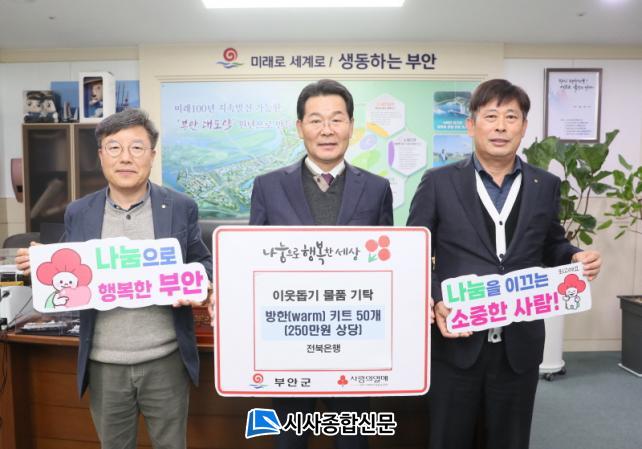 [½Ã»çÁ¾ÇսŹ® = ±è¿¬Èñ ±âÀÚ] JB±ÝÀ¶±×·ì ÀüºÏÀºÇà(ÀºÇàÀå ¹éÁ¾ÀÏ)Àº Áö³ 1ÀÏ ºÎ¾È±ºÃ»À» ¹æ¹®ÇØ ¿¬¸»À» ¸ÂÀÌÇÏ¿© ÀÌ¿ô»ç¶û ¹æÇÑŰƮ 50¼¼Æ®(250¸¸¿ø »ó´ç)¸¦ Àü´ÞÇÏ¿´´Ù.