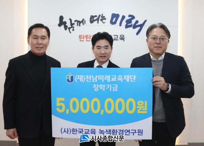 [½Ã»çÁ¾ÇսŹ® = ¿À½ÂÅà ±âÀÚ] (»ç)Çѱ¹±³À°³ì»öȯ°æ¿¬±¸¿ø(ÀÌ»çÀå ¸ÍÁØÈ£)ÀÌ Áö³ 12¿ù 1ÀÏ Àü³²¹Ì·¡±³À°Àç´Ü(ÀÌ»çÀå ±è´ëÁß)¿¡ ²Þ ½ÇÇö±Ý 500¸¸¿øÀ» ±âºÎÇß´Ù.