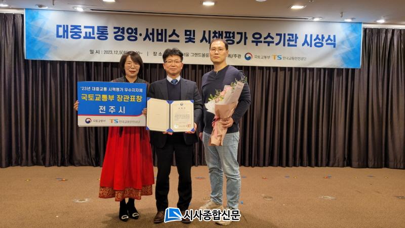 ÀüÁֽô ¿ÃÇØ ±¹Åä±³ÅëºÎ¿Í Çѱ¹±³Åë¾ÈÀü°ø´ÜÀÌ ½Ç½ÃÇÑ ¡®2023³â ´ëÁß±³Åë ½ÃÃ¥Æò°¡¡¯¿¡¼ ¿ì¼ö±â°üÀ¸·Î ¼±Á¤µÅ ±¹Åä±³ÅëºÎÀå°ü»óÀ» ¼ö»óÇß´Ù°í 5ÀÏ ¹àÇû´Ù. À̹ø ´ëÁß±³Åë ½ÃÃ¥Æò°¡´Â È¿°úÀûÀ̰í ü°èÀûÀÎ ´ëÁß±³Åë°èȹ ¹× ½ÃÃ¥ ¼ö¸³À» À¯µµÇϱâ À§ÇØ Àü±¹ 161°³ ½Ã¡¤±ºÀ» ´ë»óÀ¸·Î ½Ç½ÃµÈ °ÍÀ¸·Î, 2³â¿¡ Çѹø¾¿ ½Ç½ÃµÇ´Â Æò°¡¿¡¼ ½Ã´Â 2019, 2021³â¿¡ À̾î 3¹ø ¿¬¼Ó ¼ö»óÀ» ÇÏ´Â Äè°Å¸¦ ÀÌ·ç¾ú´Ù.