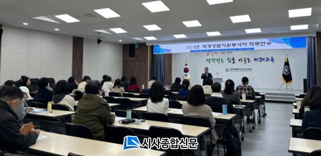[½Ã»çÁ¾ÇսŹ® = °í¼º¹Î ±âÀÚ] Á¦ÁÖÆ¯º°ÀÚÄ¡µµ±³À°Ã»(±³À°°¨ ±è±¤¼ö)Àº Çлý»ó´ãÀÚ¿øºÀ»çÀÚ 61¸íÀ» ´ë»óÀ¸·Î 12¿ù 4ÀÏ(¿ù)°ú 5ÀÏ(È) ¾çÀϰ£ µµ±³À°Ã» Á¦1ȸÀÇ½Ç ¹× Á¦2ȸÀǽǿ¡¼ »ó´ã Àü¹®¼º ¿ª·® °È¸¦ À§ÇÑ¡°2023³â Çлý»ó´ãÀÚ¿øºÀ»çÀÚ Á÷¹«¿¬¼ö¡±¸¦ ¿î¿µÇϰí ÀÖ´Ù.