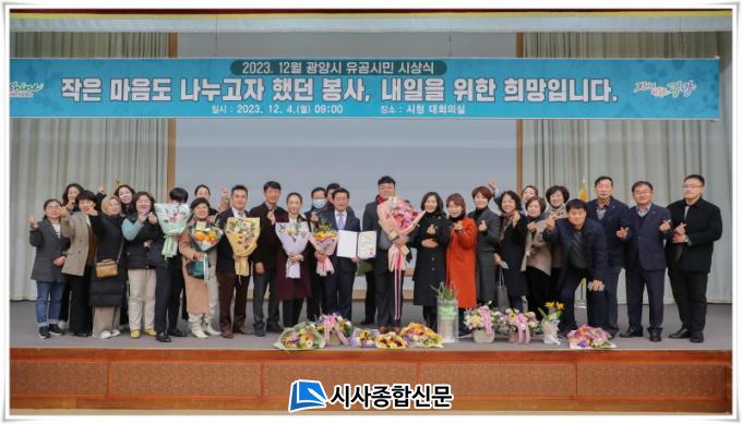 ÀÌ´ÞÀÇ ºÀ»ç¿ÕÀ¸·Î´Â ¡®»õ¸¶À» ±³Åë ºÀ»ç´ë ±¤¾çÁö´ë¡¯ÀÇ ¹Ú»óÀ² ¾¾°¡ ¼±Á¤µÆ´Ù. ¹Ú»óÀ² ¾¾´Â 1365 ÀÚ¿øºÀ»ç Æ÷ÅÐ °ü¸®½Ã½ºÅÛ¿¡ µû¸£¸é 2009³âºÎÅÍ ÀÚ¿øºÀ»ç 263ȸ, 906½Ã°£À» ½Ç½ÃÇßÀ¸¸ç, Áö³ 10¿ù ÇÑ ´Þ°£ 28ȸ, 114½Ã°£À» ½Ç½ÃÇØ ±¤¾ç½Ã ÀÚ¿øºÀ»çÀÚ Áß 10¿ù Ȱµ¿ ½ÇÀûÀÌ °¡Àå ¿ì¼öÇß´Ù. À̹ø ´Þ ¼ö»óÀÚ Áß ÃÖ°í·ÉÀ¸·Î Á߸¶µ¿ À̸Ϳ± ´Ô(77¼¼)ÀÌ Å¿µ¾ÆÆÄÆ® °æ·Î´ç ȸÀåÀ¸·Î¼ ³ë³ëÄɾî Ȱ¼ºÈ¿¡ ±â¿©ÇÑ °øÀ¸·Î ǥâÀ» ¼ö»óÇß´Ù.