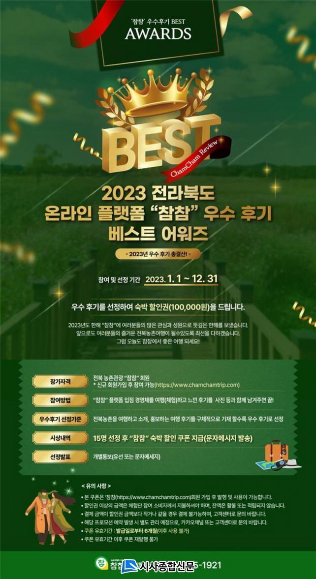 ¡®ÂüÂü¡¯Àº ¡ãÀÌ´ÞÀÇ Ãßõ ¿©Çà ÇÁ·Î¸ð¼Ç(¿ùº° ±âȹÀü) ¡ã¿©Çà °æºñ ÇÒÀÎ Áö¿ø(üÇè ÃÖ´ë 50%, ¼÷¹Ú ÃÖ´ë 30% ÇÒÀÎ ÇýÅÃ) ¡ã½Å»ó ÀÔÁ¡ »óǰ üÇè´Ü ¿î¿µ(±âȹ»óǰ) ¡ãÀüºÏ ¹æ¹æ°î°î ±Û·Î¹ú ¸ÞÀÌÆ®(¿Ü±¹ÀÎ ´ë»ó) ¡ã±Í³ó‧±ÍÃÌÀÎ °æÇèÀ¸·Î °í¹ÎÇØ°á ÇÁ·Î¸ð¼Ç µî ´Ù¾çÇÑ À̺¥Æ®(ÇÁ·Î¸ð¼Ç)¸¦ ÅëÇØ ¿Ã ÇÑÇØ Àü±¹ 1¸¸ 7õ¿© ¸íÀÌ ÀüºÏÀ¸·Î ³óÃÌ¿©ÇàÀ» ´Ù³à°¡µµ·Ï È«º¸ÇßÀ¸¸ç, ȨÆäÀÌÁö ´©Àû ¹æ¹®ÀÚ ¼ö´Â 70¸¸¸í¿¡ ´ÞÇØ Àü¶óºÏµµ ³óÃ̰ü±¤ ´ëÇ¥ Ç÷§ÆûÀ¸·Î ÀÚ¸®¸Å±èÇϰí ÀÖ´Ù.