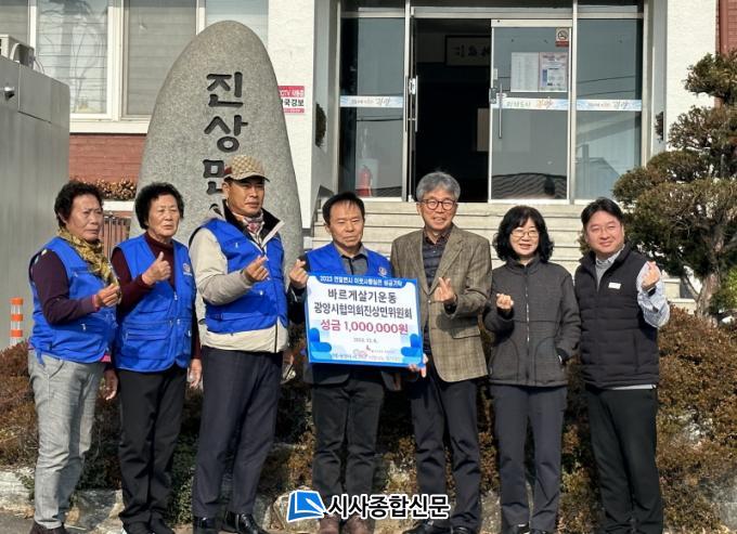 [½Ã»çÁ¾ÇսŹ® = Àå¹Î±Ô ±âÀÚ] ¹Ù¸£°Ô»ì±â¿îµ¿ ±¤¾ç½ÃÇùÀÇȸ Áø»ó¸éÀ§¿øÈ¸(ȸÀå ±è¿ë»ý)´Â 6ÀÏ(¼ö) Áø»ó¸é»ç¹«¼Ò¿¡¼ ¾î·Á¿î ÀÌ¿ôÀ» À§ÇØ ½á´Þ¶ó¸ç ¼º±Ý 100¸¸¿øÀ» (Àç)±¤¾ç½Ã»ç¶û³ª´®º¹ÁöÀç´Ü¿¡ ±âŹÇß´Ù.